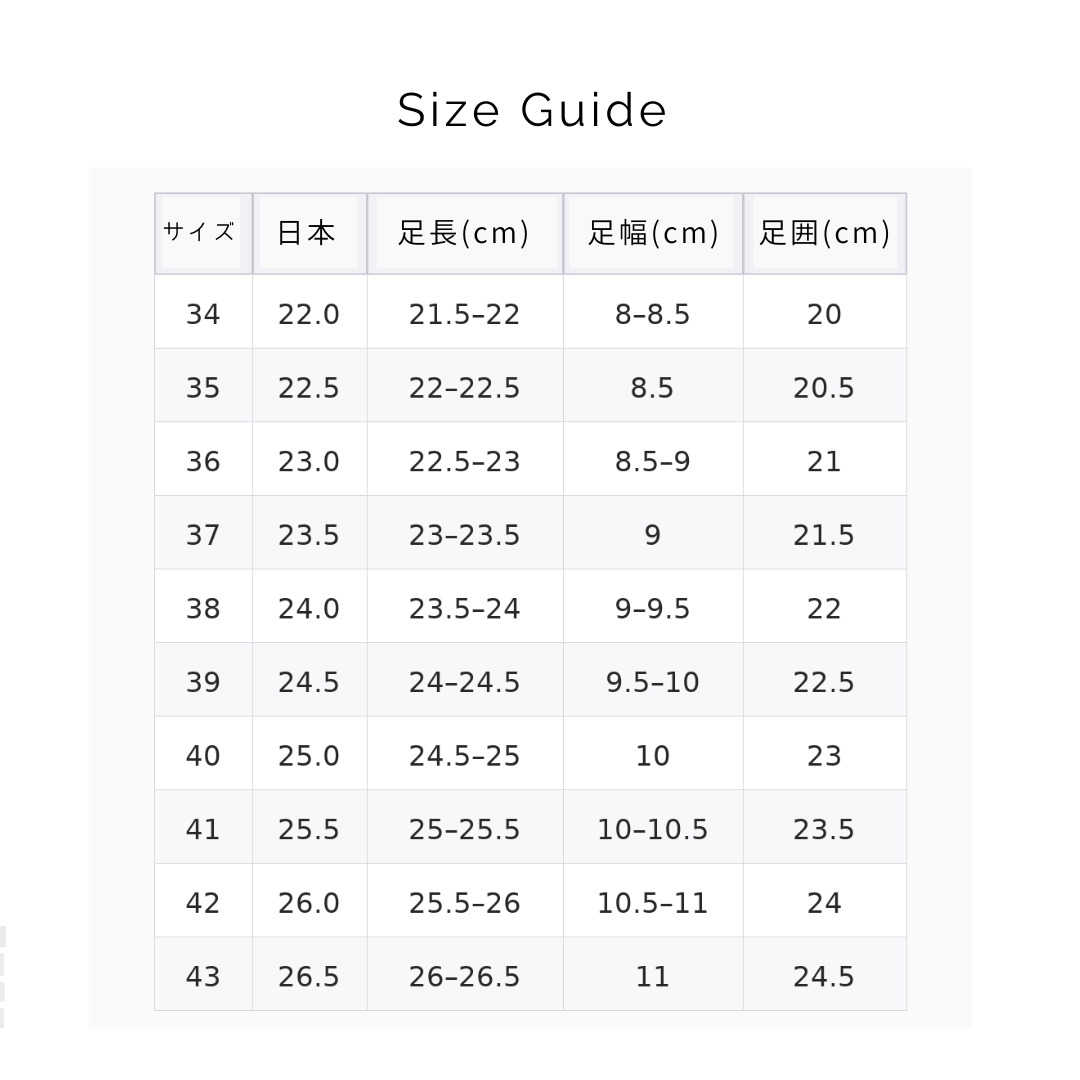 (甲高/幅広の方は +0.5cm がおすすめ)