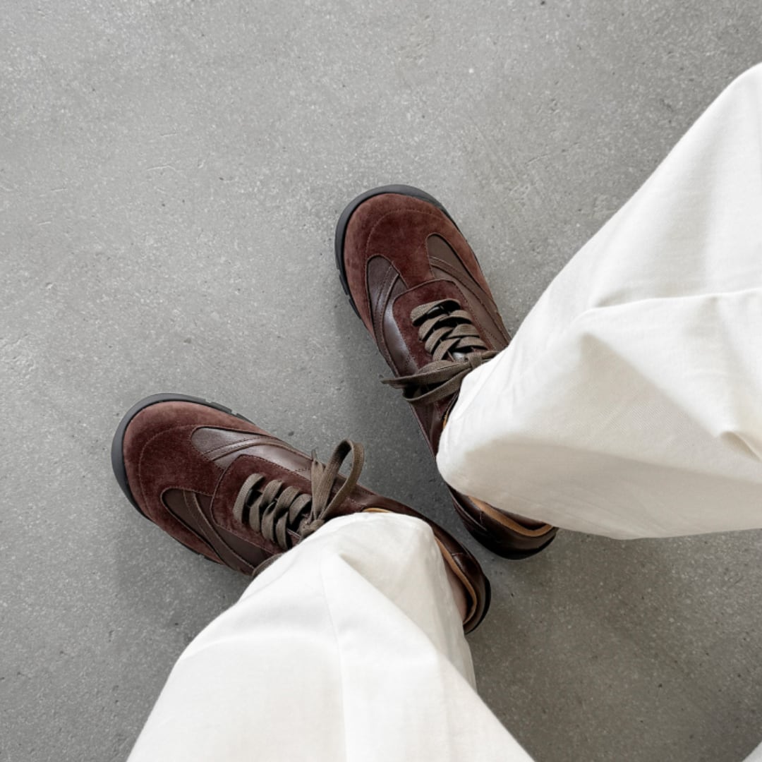 ヴィンテージな風合いと都会的な洗練が絶妙に融合したレトロジョガースニーカー。