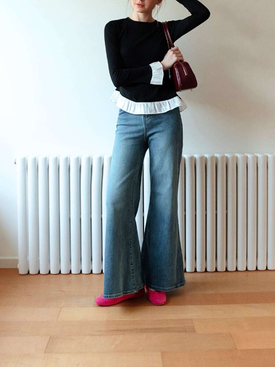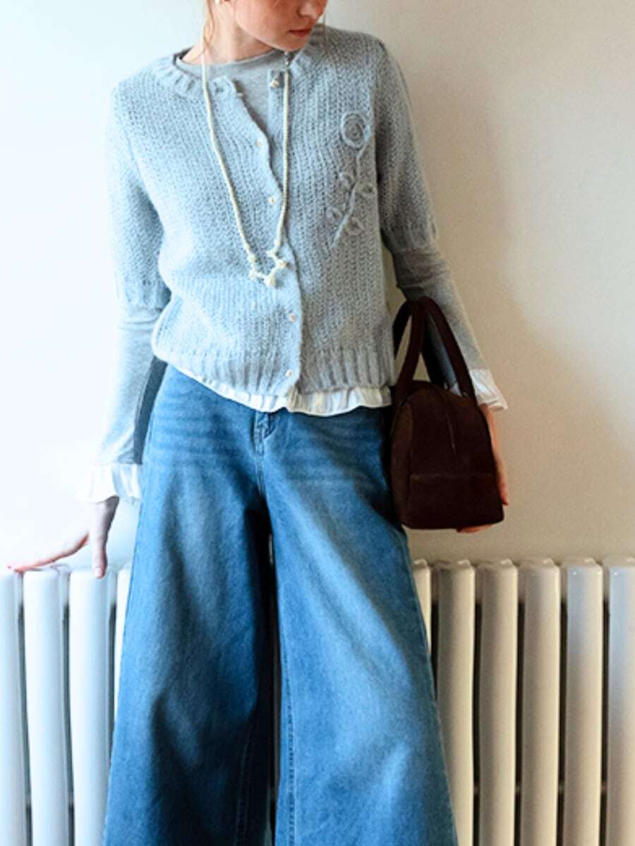 袖口と裾にあしらわれた軽やかなフリルが、女性らしい華やかさをプラス。