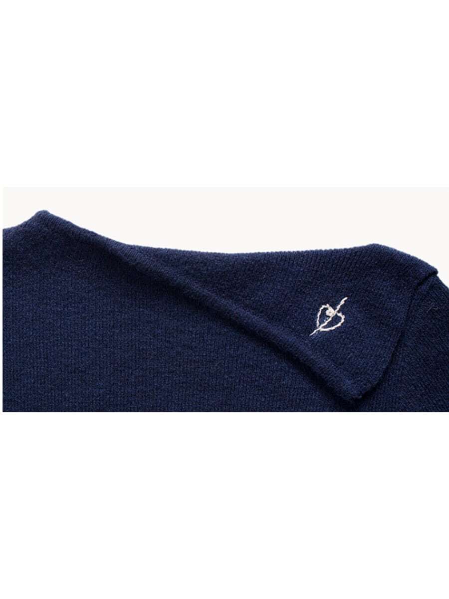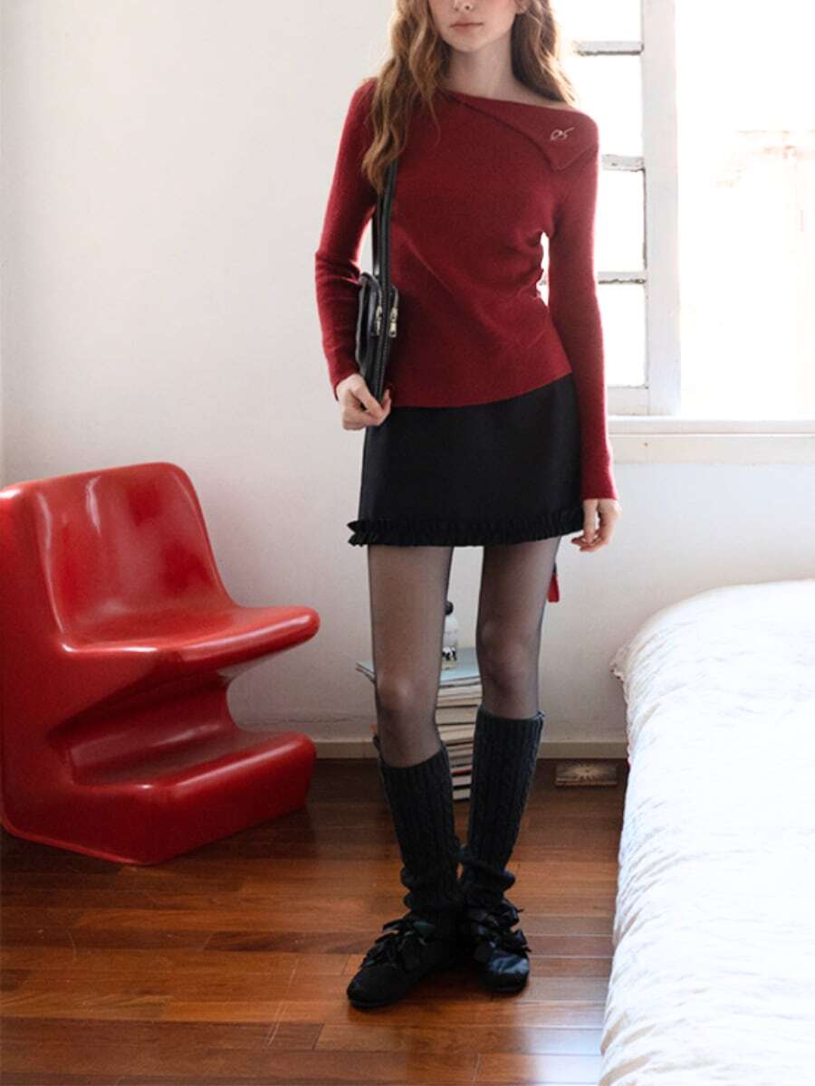 非対称デザインが特徴のニットトップスです。程よいフィット感と女性らしいシルエットを演出します。