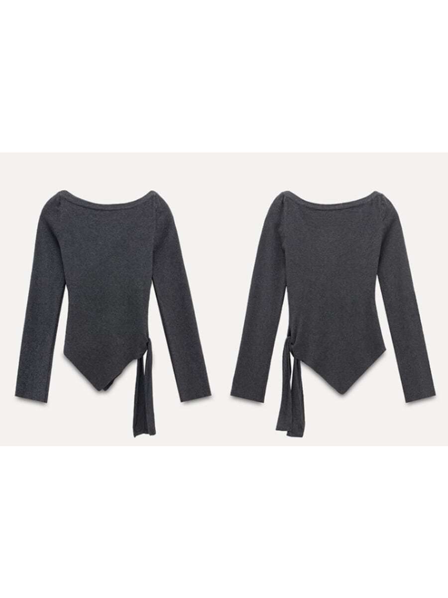 裾のリボンディテールがアクセントとなり、コーディネートに動きと遊び心をプラス。