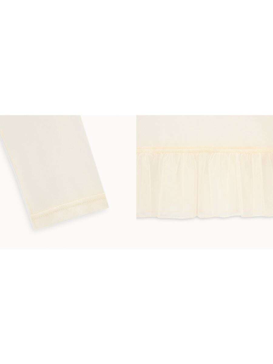 一枚でシンプルに着るだけでなく、カーディガンやセーターのインナーとしても活躍。特に冬のレイヤードスタイルでは、その絶妙な透け感がコーディネートに華やかさを加えます。スカートやパンツスタイルとも相性が良く、日常から特別なシーンまで幅広く使える万能な一着です。