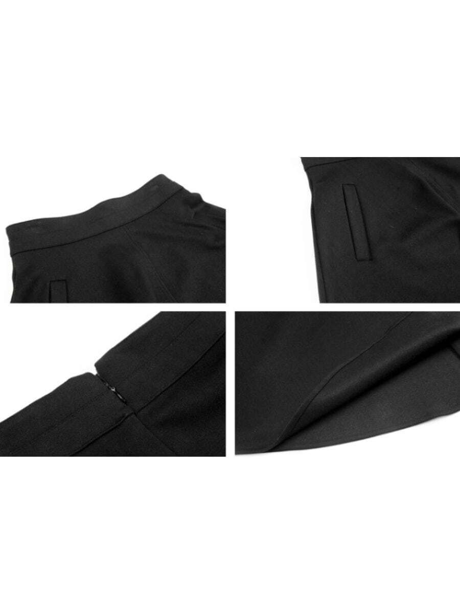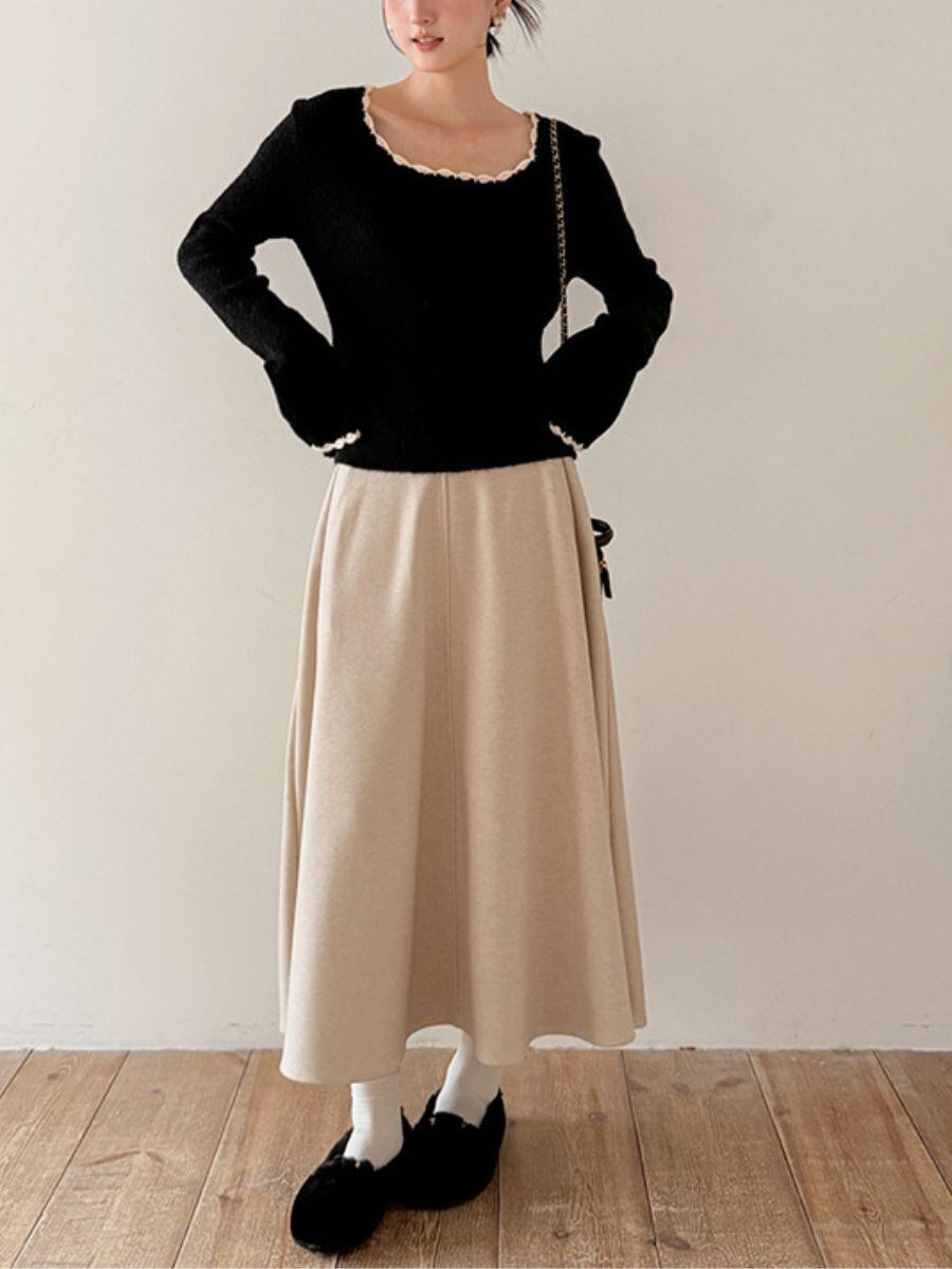フレアラインが美しいAラインシルエットを作り出し、歩くたびに優雅に揺れる裾が女性らしさを引き立てます。
