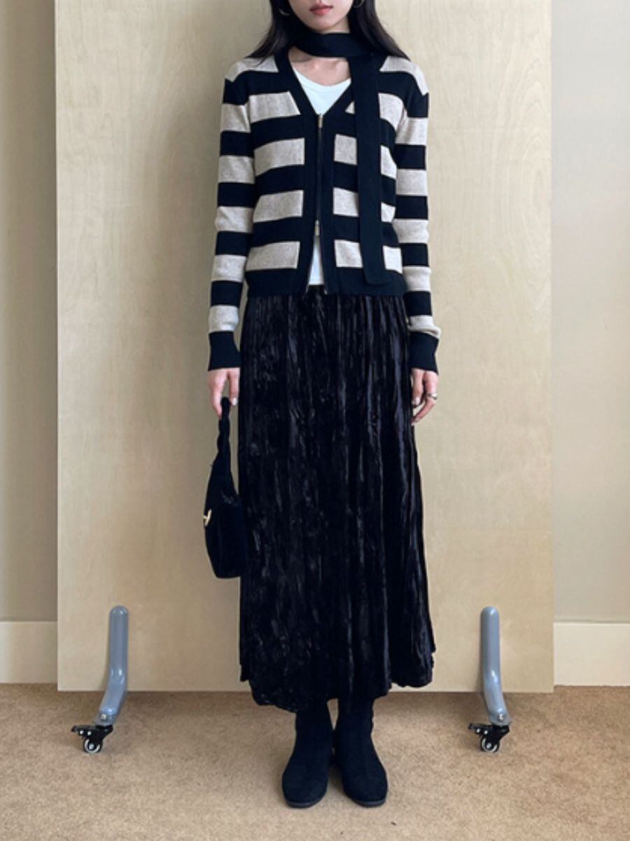 3colors ::Velvet Pleated Maxi Skirt