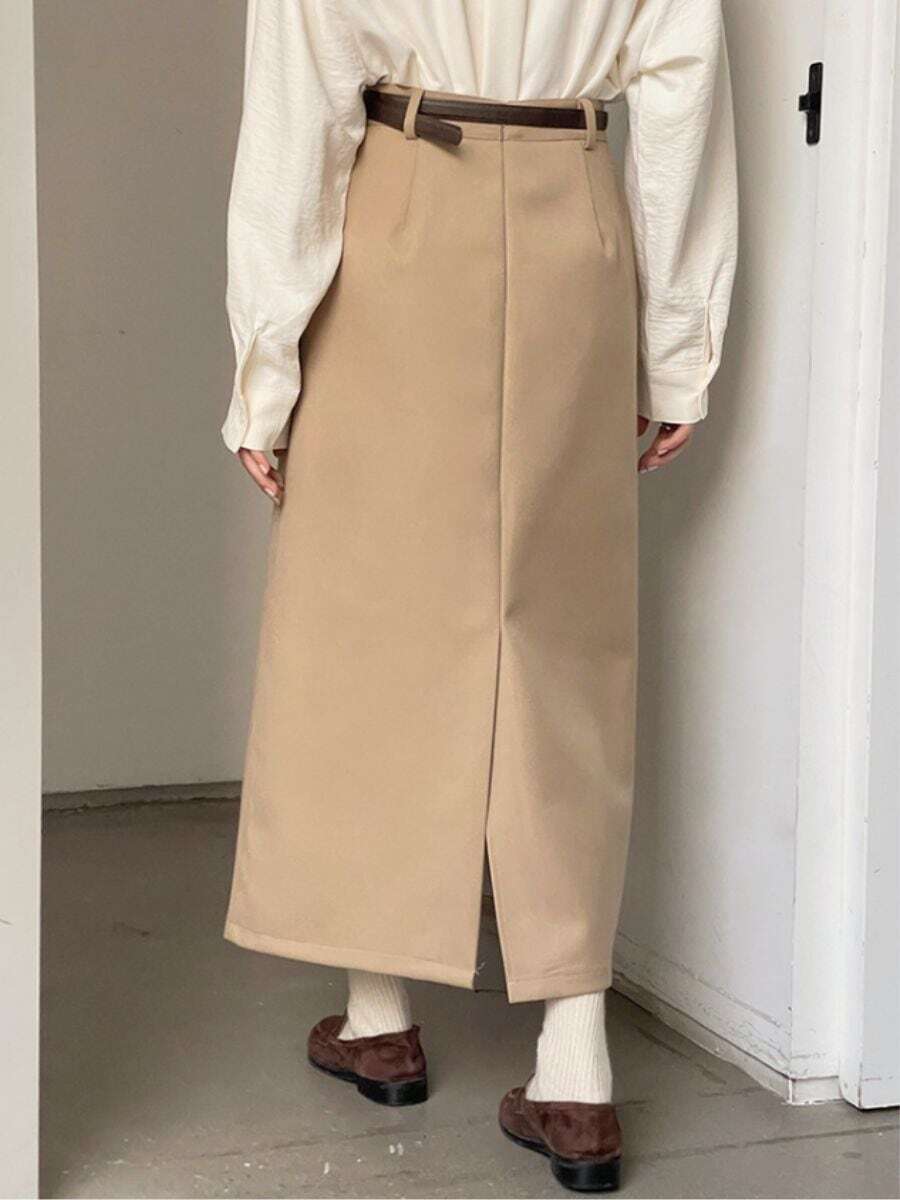 高品質なポリエステル混紡素材を使用し、美しいシルエットを長時間キープ。 滑らかな質感と軽やかな着心地で、日常使いから特別なシーンまで幅広く活躍します。 付属のベルトはウエストラインを強調し、スタイルアップ効果も抜群。 バックにスリットが施されており、動きやすさと女性らしいアクセントを兼ね備えています。