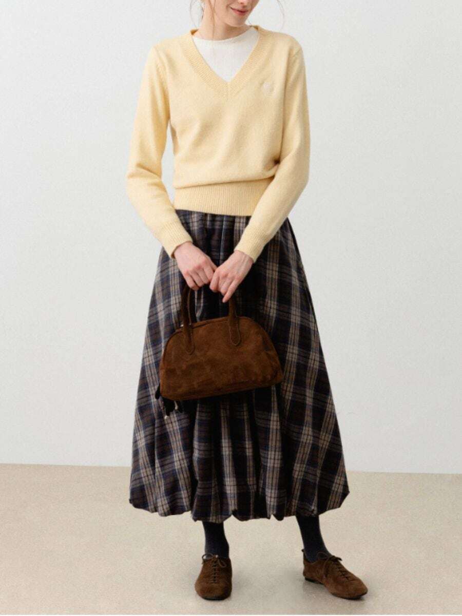 セーターやブラウスと合わせることで、季節感のある多彩なスタイリングが楽しめます。