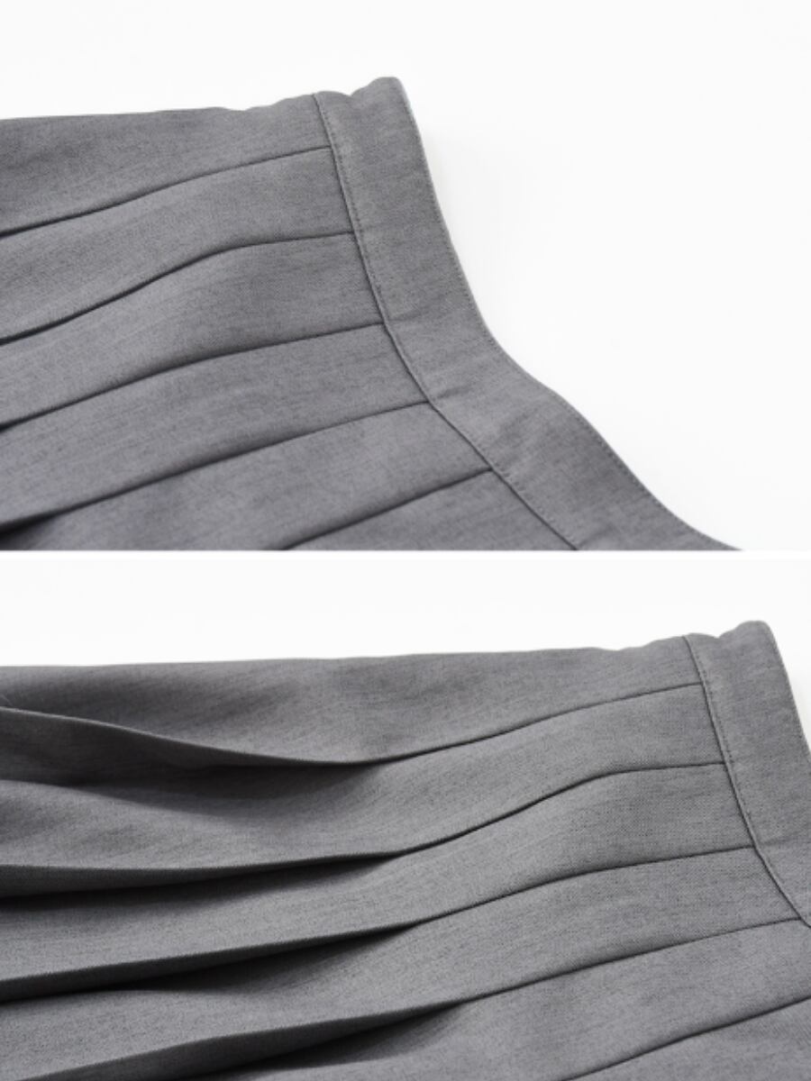 柔らかく滑らかな素材感が上品な印象を演出し、歩くたびに広がるプリーツが女性らしさを引き立てます。