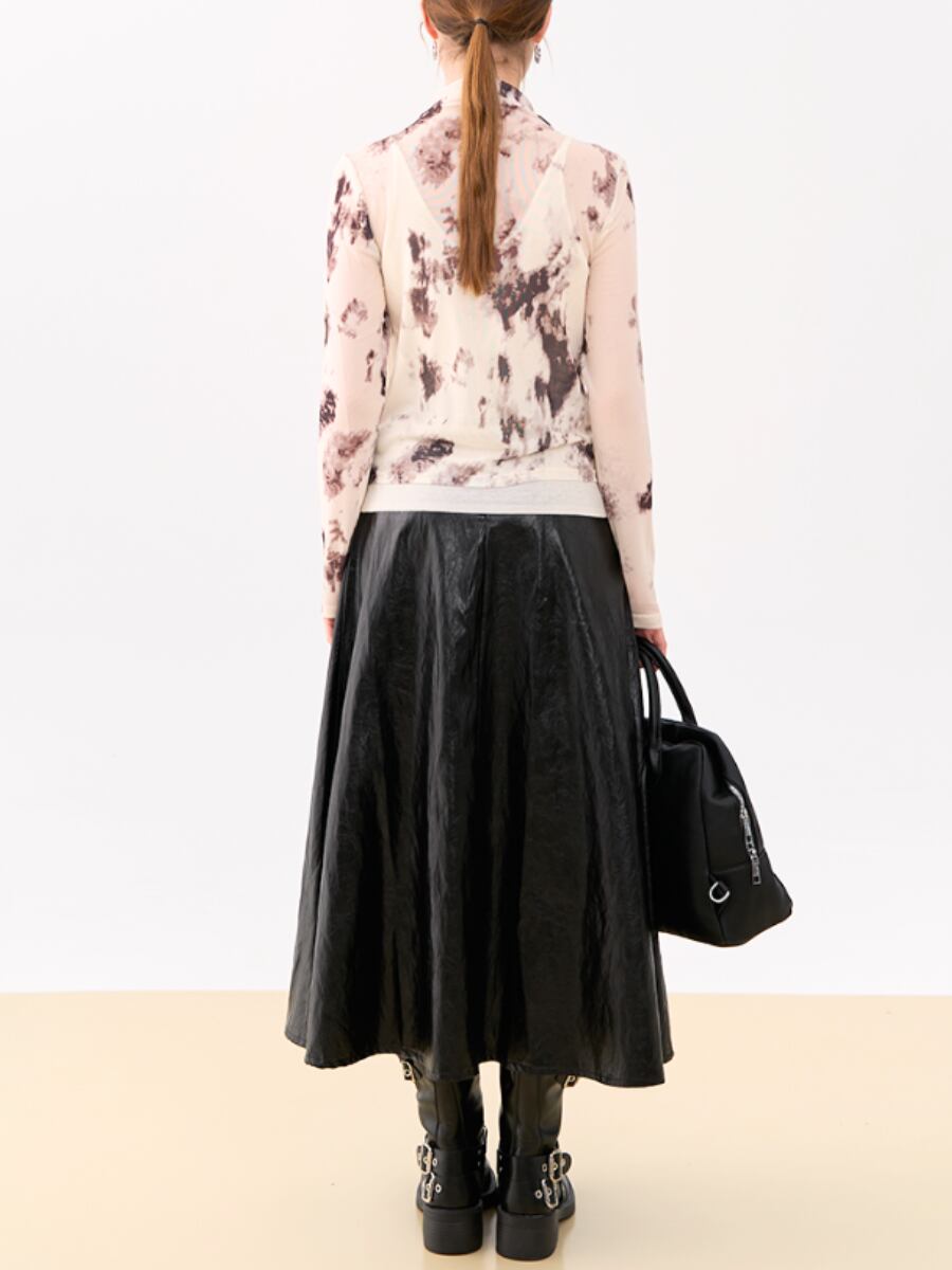 高級感漂うフェイクレザー素材を使用したフレアスカートです。
