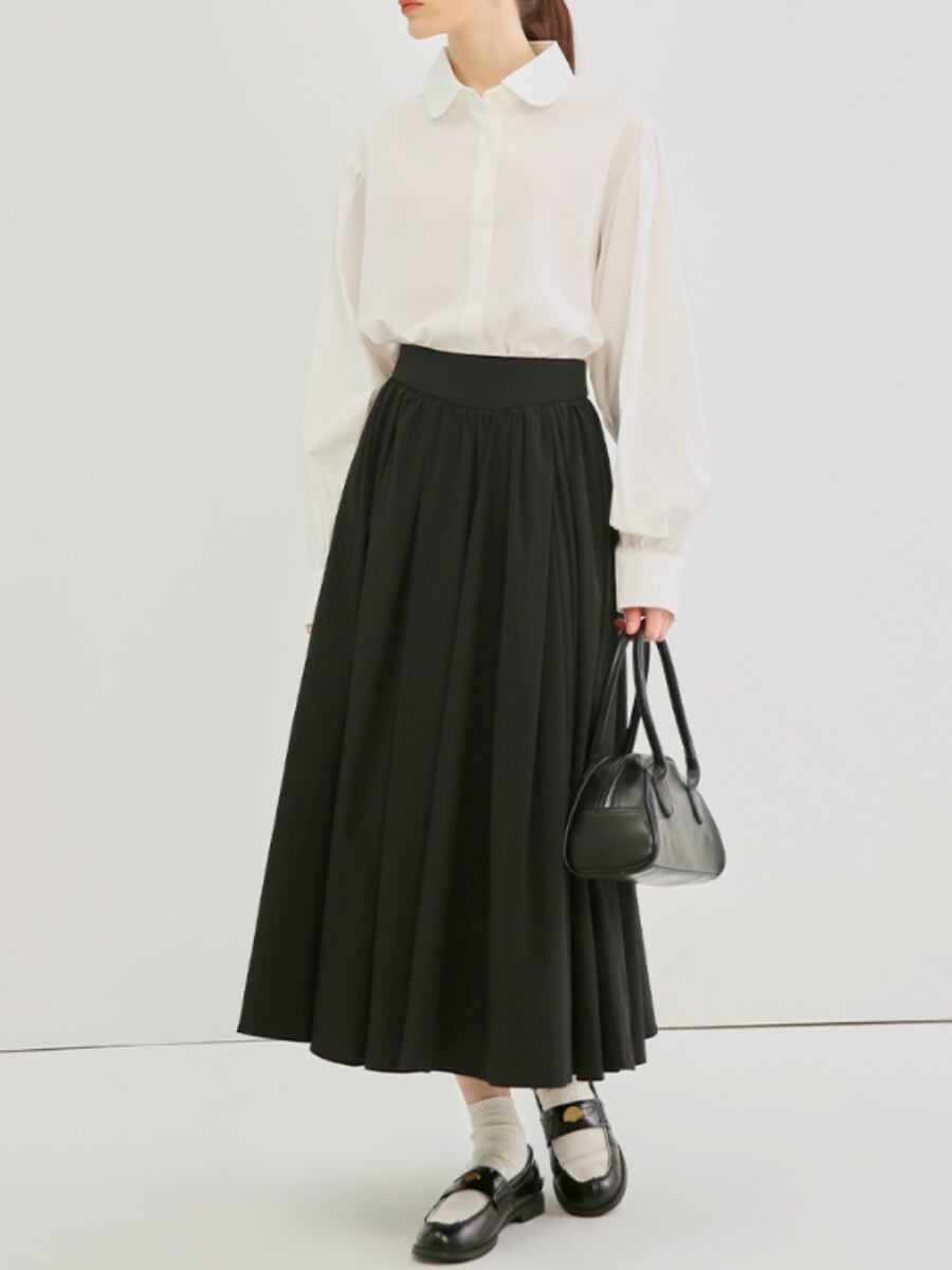 流れるようなプリーツが美しいミディ丈のフレアスカートです。