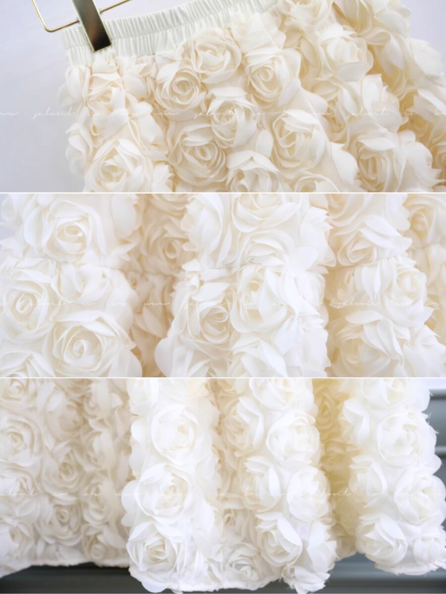 華やかな立体フラワーデザインが目を引く、ボリュームたっぷりのスカート。