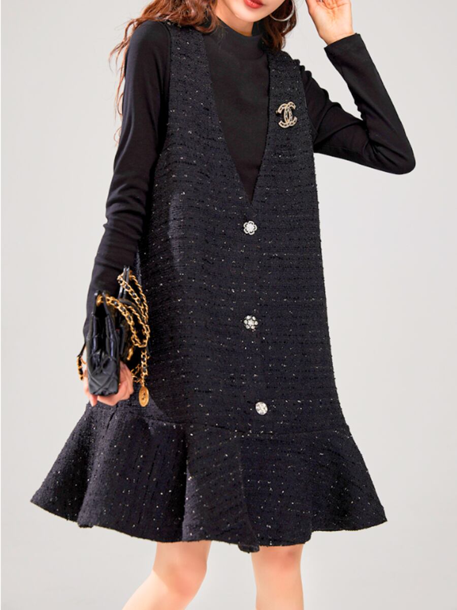 Glitter Tweed Flared Dress